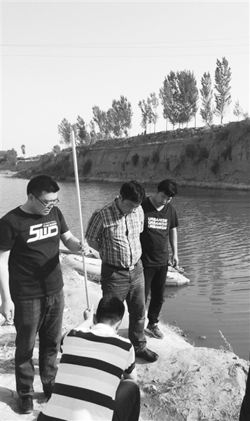為保障白洋淀水環(huán)境安全,河北省全面排查、整治涉水污染。圖為執(zhí)法人員對(duì)容城縣境內(nèi)的坑塘廢水進(jìn)行取樣檢測(cè)。 滑永輝攝