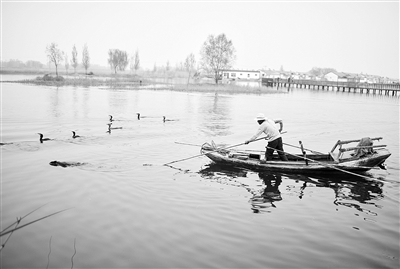 白洋淀淀區(qū)今后將全面禁止網(wǎng)箱養(yǎng)魚,并加大增殖放流力度。圖為淀區(qū)漁民正在訓(xùn)練鸕鶿捕魚,這一項(xiàng)目既可增加漁民收入,也可作為淀區(qū)休閑漁業(yè)的表演項(xiàng)目。 趙威攝
