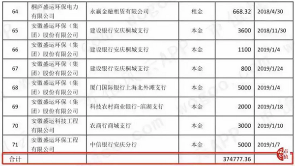 截止2019年2月14日,盛運環(huán)保逾期債務(wù)共計71筆,逾期起始日最早為2017年7月20日,最晚為2019年1月7日,逾期性質(zhì)包括本金、利息、租金和項目貸款等,逾期債務(wù)高達(dá)37.48億元。