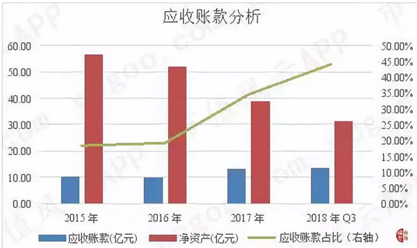 公司2015年末至2018年3季度末的無形資產(chǎn)金額分別為5.79億元、10.24億元、32.80億元和31.79億元,占公司凈資產(chǎn)的比例分別為10.25%、19.64%、84.28%和101.66%,占比持續(xù)增加,2018年3季度末甚至一度超過了公司的凈資產(chǎn)規(guī)模。