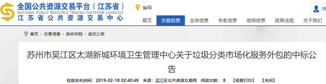 原標題:聯(lián)運環(huán)境中標605萬蘇州垃圾分類項目