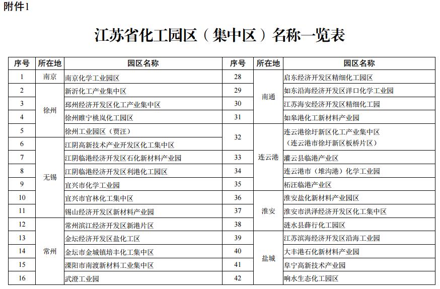 附件:1.江蘇省化工園區(qū)(集中區(qū))名稱一覽表