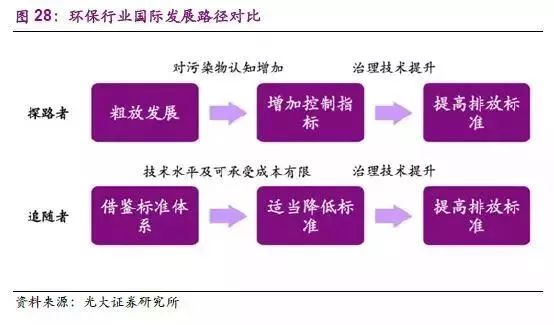 以美國為首的發(fā)達國家的環(huán)保意識隨著工業(yè)的大力發(fā)展率先覺醒,開始針對工業(yè)污染物制定相關標準。隨著對污染物的認知上升,行業(yè)標準趨于嚴格,技術規(guī)范性也逐步提高。到二十世紀90年代,發(fā)達國家的探路者之旅已經(jīng)基本形成。以中國為代表的發(fā)展中國家雖然在環(huán)保行業(yè)起步較晚,但卻有一整套行業(yè)標準和技術規(guī)范可以借鑒,扮演著追隨者的角色。