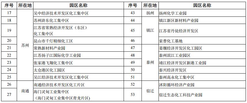 附件:1.江蘇省化工園區(qū)(集中區(qū))名稱一覽表