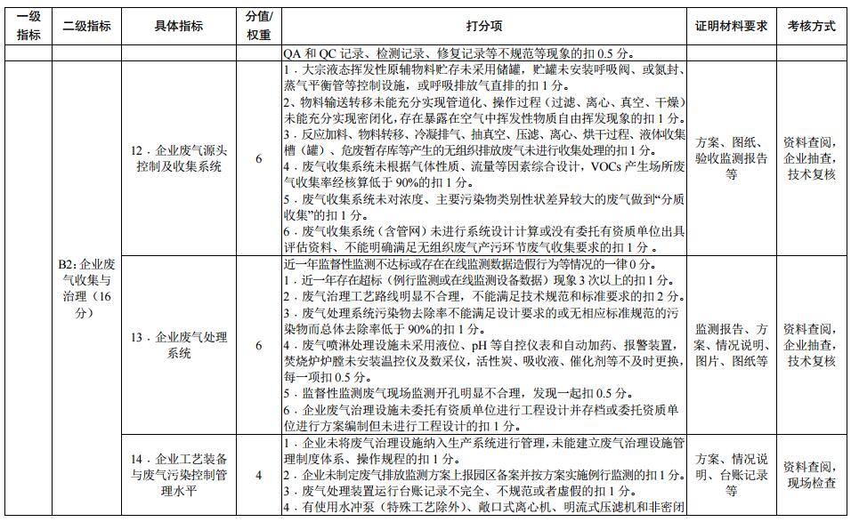 3﹒企業(yè)應(yīng)根據(jù)各類廢氣特性、產(chǎn)生量、污染物濃度、溫度、壓力等因素綜合分析選擇合適、高效的末端處理工藝,采用吸附、催化凈化、焚燒等工藝的應(yīng)符合相關(guān)標(biāo)準(zhǔn)規(guī)范要求;無相應(yīng)標(biāo)準(zhǔn)規(guī)范的,污染物總體去除率不低于90%。廢氣治理設(shè)施應(yīng)納入生產(chǎn)系統(tǒng)進(jìn)行管理,配備連續(xù)有效的自動(dòng)監(jiān)測以及記錄設(shè)施,提高廢氣處理的自動(dòng)化程度,噴淋處理設(shè)施應(yīng)配備液位、PH等自控儀表、采用自動(dòng)加藥。園區(qū)實(shí)行統(tǒng)一的LDAR管理制度,統(tǒng)一評(píng)估企業(yè)LDAR實(shí)施情況。