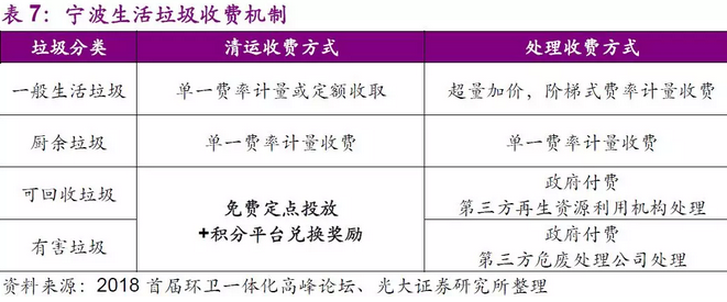 以寧波的生活垃圾收費(fèi)機(jī)制為例,寧波市于2018年3月底出臺了《寧波市生活垃圾分類實(shí)施方案(2018-2022年)》,方案明確了寧波市未來五年的垃圾分類工作目標(biāo),同時明確未來將以“使用者付費(fèi)”為原則,出臺差別化的生活垃圾處理收費(fèi)制度。而在寧波計劃推行的收費(fèi)制度中,亮點(diǎn)在于生活垃圾和廚余垃圾的按費(fèi)率計量收費(fèi),以及可回收垃圾和有害垃圾的費(fèi)用豁免+積分獎勵原則。