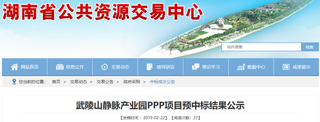湖南省武陵山靜脈產(chǎn)業(yè)園PPP項(xiàng)目發(fā)布預(yù)中標(biāo)結(jié)果公示,北京首創(chuàng)環(huán)境投資股份有限公司(牽頭單位)/浙江省二建建設(shè)集團(tuán)有限公司/中國輕工業(yè)廣州工程有限公司組成的聯(lián)合體成為預(yù)中標(biāo)社會(huì)資本。