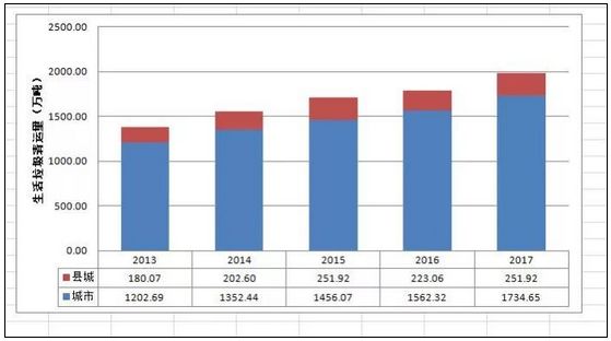 上圖:江蘇省生活垃圾清運(yùn)量統(tǒng)計(jì),來源:住建部城鄉(xiāng)建設(shè)統(tǒng)計(jì)年鑒