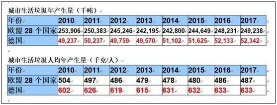 上表:歐盟、德國生活垃圾量統(tǒng)計(jì) 來源:EUROSTAT