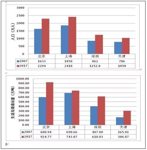 國內(nèi)的數(shù)據(jù)本該可比,實(shí)際可比性很差。比如深圳的生活垃圾清運(yùn)量是天津的兩倍,而統(tǒng)計(jì)的人口深圳只比天津多20%,深圳的實(shí)際居住人口恐怕明顯被低估。上海的生活垃圾清運(yùn)量在2013年以前一直比北京高,2013年以后無緣無故地降下來了,是什么因素,是否有人為因素?天津的人均生活垃圾清運(yùn)量少,并不是真的產(chǎn)生少,而是收集范圍沒有全覆蓋或者沒有統(tǒng)計(jì);上海的人均生活垃圾清運(yùn)量少,并不是真的產(chǎn)生量少;北京市人均生活垃圾高達(dá)1.1千克/人·日,明顯高于天津、上海,這里還不包括廢品,是居住人口沒有充分統(tǒng)計(jì),還是生活垃圾量重復(fù)統(tǒng)計(jì),比如綜合處理廠的生活垃圾最終在填埋場(chǎng)或焚燒廠還要統(tǒng)計(jì)一次?