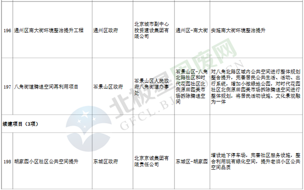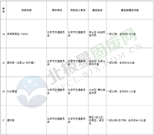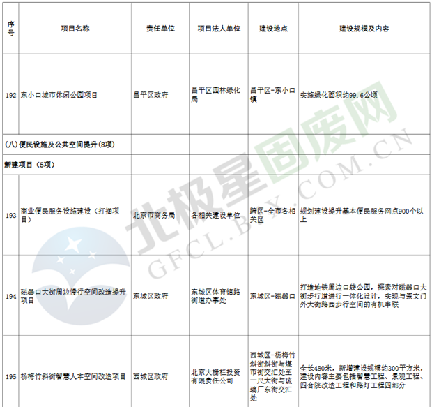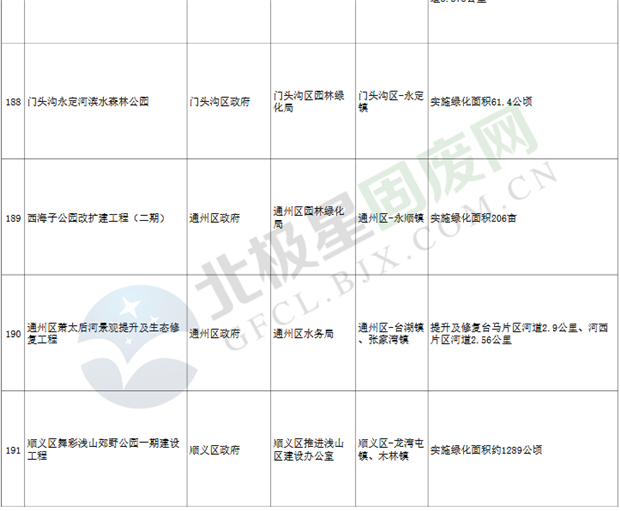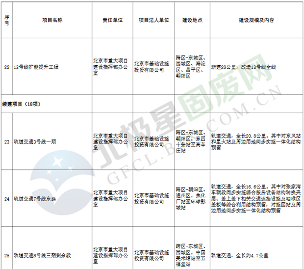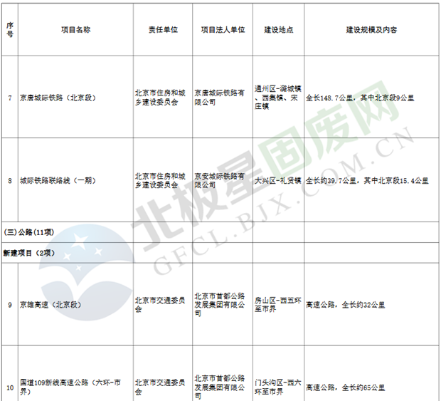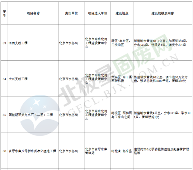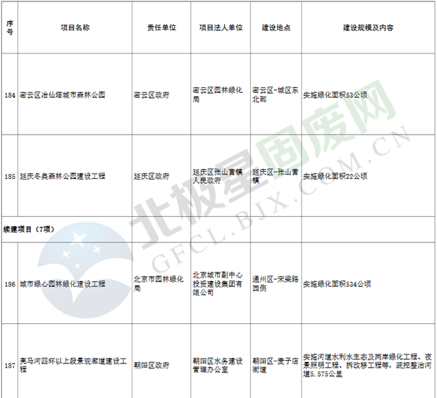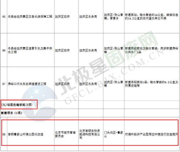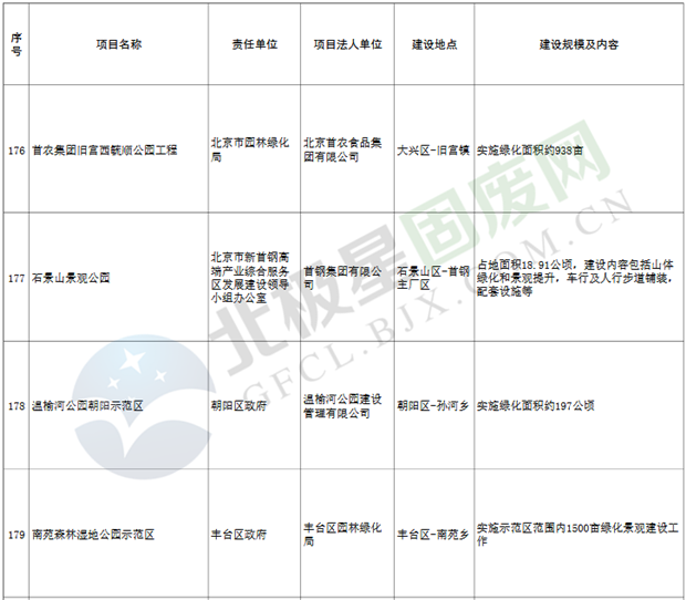 9.垃圾處理設(shè)施項(xiàng)目3個(gè),重點(diǎn)實(shí)施豐臺(tái)區(qū)循環(huán)經(jīng)濟(jì)產(chǎn)業(yè)園滲瀝液處理廠二期工程、朝陽區(qū)建筑垃圾資源化處置項(xiàng)目等。