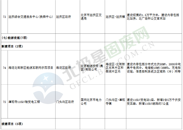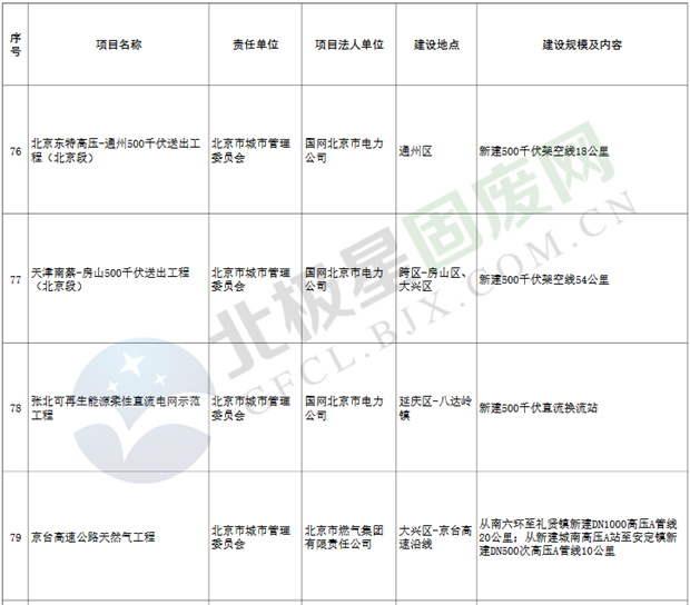 7.能源設(shè)施項(xiàng)目7個(gè),重點(diǎn)實(shí)施北京東特高壓―通州500千伏送出工程(北京段)、張北可再生能源柔性直流電網(wǎng)示范工程等;