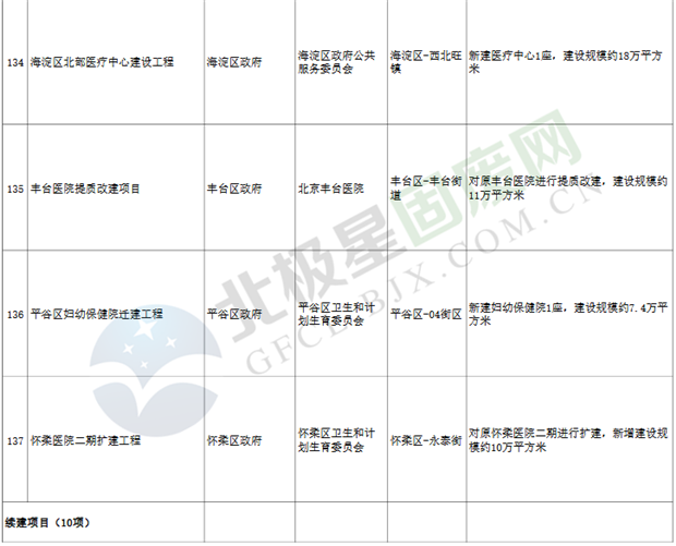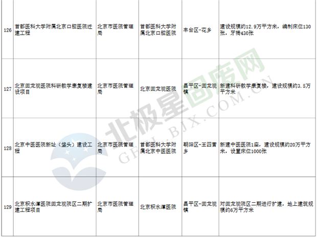12.醫(yī)療項(xiàng)目25個(gè),重點(diǎn)實(shí)施北京口腔醫(yī)院遷建、積水潭醫(yī)院回龍觀院區(qū)二期擴(kuò)建等;