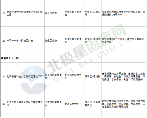 11.教育項(xiàng)目20個(gè),重點(diǎn)實(shí)施中國人民大學(xué)通州新校區(qū)一期建設(shè)項(xiàng)目、北京學(xué)校等;