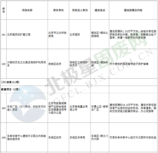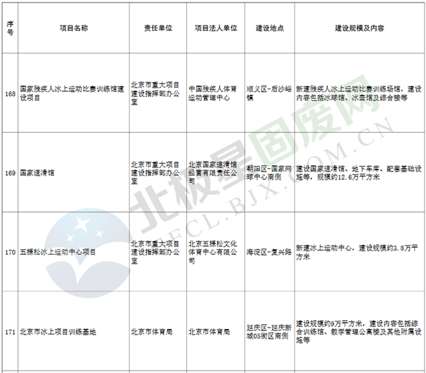 15.體育項(xiàng)目11個(gè),重點(diǎn)實(shí)施國家速滑館、回龍觀文化體育公園等;