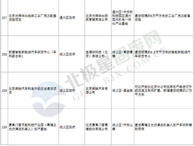 100個(gè)帶動(dòng)性強(qiáng)、具有龍頭和引領(lǐng)作用的高精尖產(chǎn)業(yè)項(xiàng)目,當(dāng)年計(jì)劃完成建安投資約230億元,主要包括: