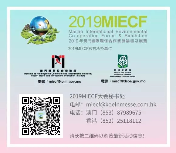 由中華人民共和國澳門特別行政區(qū)政府主辦,得到國家發(fā)展和改革委員會、國家科學(xué)技術(shù)部、國家工業(yè)和信息化部以及國家生態(tài)環(huán)境部作為特邀支持單位,并由泛珠三角省/區(qū)政府協(xié)辦的2019年澳門國際環(huán)保合作發(fā)展論壇及展覽(2019MIECF)將于3月28日-30日舉行。