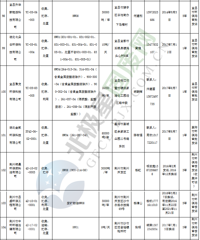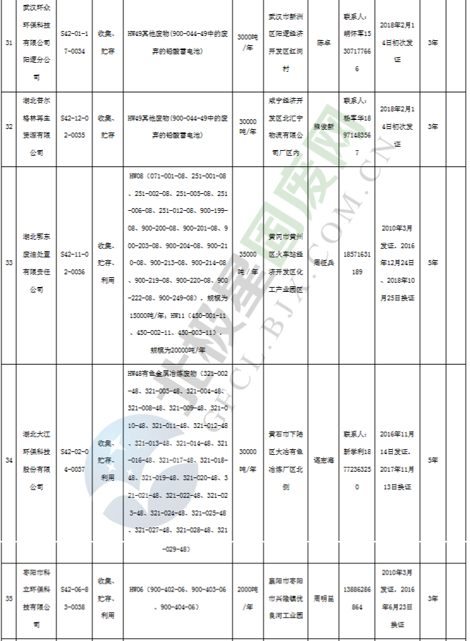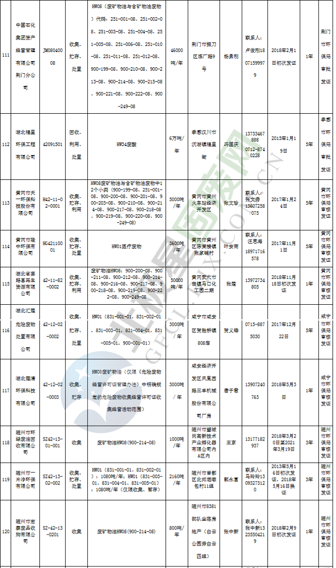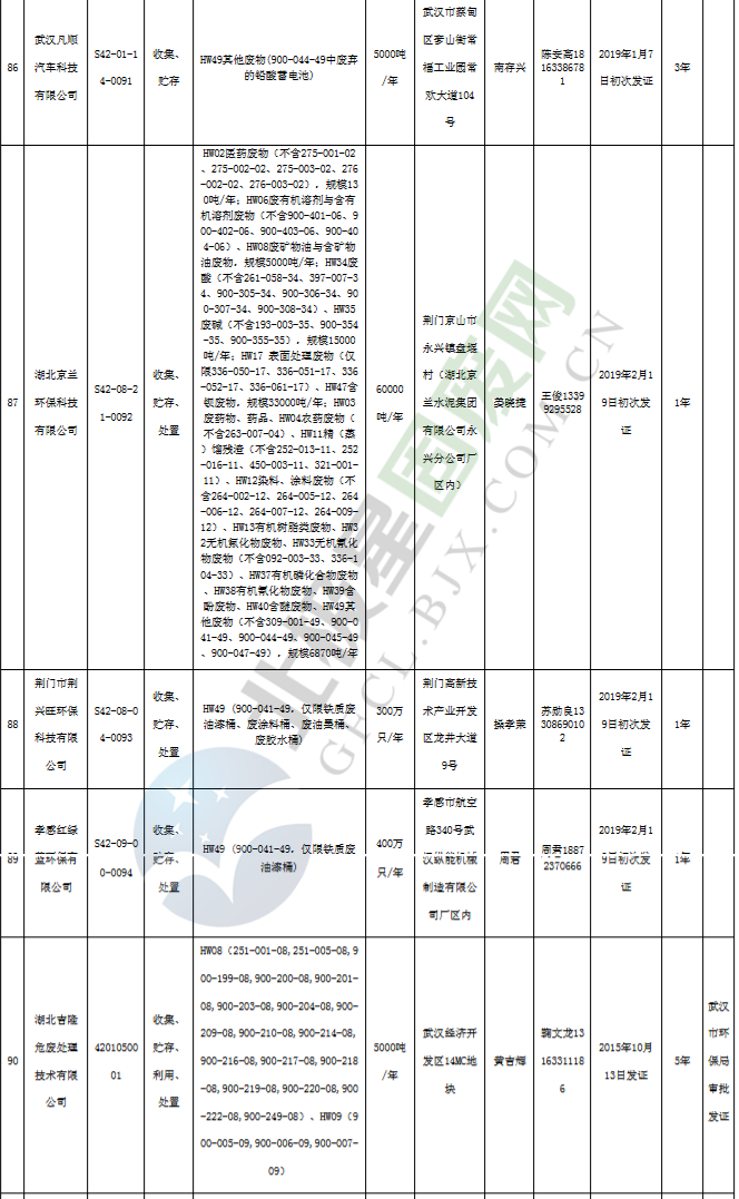 原標(biāo)題:《湖北省危險(xiǎn)廢物經(jīng)營許可證》單位名錄(截至2019年2月19日,共125家)