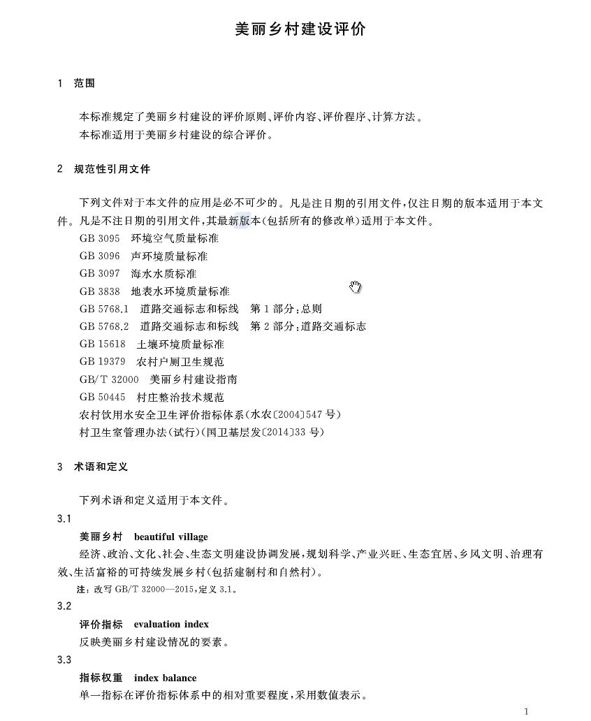 近日,國(guó)家市場(chǎng)監(jiān)督管理總局、國(guó)家標(biāo)準(zhǔn)化管理委員會(huì)召開(kāi)新聞發(fā)布會(huì),批準(zhǔn)發(fā)布《美麗鄉(xiāng)村建設(shè)評(píng)價(jià)》國(guó)家標(biāo)準(zhǔn)。該標(biāo)準(zhǔn)提出了美麗鄉(xiāng)村建設(shè)評(píng)價(jià)的評(píng)價(jià)原則、評(píng)價(jià)內(nèi)容、評(píng)價(jià)程序、計(jì)算方法等,便于更好地引導(dǎo)和推進(jìn)美麗鄉(xiāng)村建設(shè),推動(dòng)鄉(xiāng)村振興戰(zhàn)略,還老百姓綠水青山。