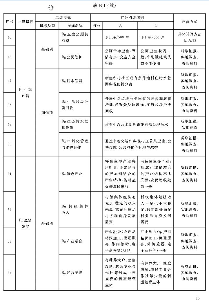 標(biāo)準(zhǔn)在內(nèi)容編制上,將美麗鄉(xiāng)村建設(shè)評(píng)價(jià)重點(diǎn)放在村莊建設(shè)、生態(tài)環(huán)境、經(jīng)濟(jì)發(fā)展、公共服務(wù)內(nèi)容方面,有利于引領(lǐng)美麗鄉(xiāng)村建設(shè)朝著村莊秀美、環(huán)境優(yōu)美、生活甜美、社會(huì)和美的方向前進(jìn);除對(duì)硬件建設(shè)提出要求外,還對(duì)設(shè)施管理、維護(hù)、經(jīng)費(fèi),人員配制等軟件方面提出要求;注重以人為本,將編制規(guī)劃村民參與性作為美麗鄉(xiāng)村建設(shè)評(píng)價(jià)指標(biāo)的一個(gè)加強(qiáng)項(xiàng),規(guī)定群眾滿意度權(quán)重不低于10%;在確定定量評(píng)價(jià)指標(biāo)時(shí),還考慮了全國(guó)各地的水平差異。