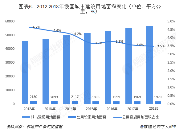 根據(jù)2019年1月住建部公布的《2017年城鄉(xiāng)建設(shè)統(tǒng)計年鑒》,2017年全國城市建設(shè)用地面積達到55155.5平方公里,其中市政公用基礎(chǔ)設(shè)施用地面積為1969平方公里,占比僅為3.6%,預(yù)計2018年將進一步下降。