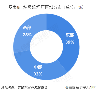 盡管東部、中部和西部地區(qū)的生活垃圾填埋處理占比相差較大,不過比較衛(wèi)生填埋廠分布可以發(fā)現(xiàn),東中西部地區(qū)衛(wèi)生填埋場數(shù)量相差并不懸殊。在垃圾填埋場數(shù)量上,我國垃圾填埋廠分布較為均勻,整體來看東部垃圾廠比中部多40多座,比西部多70多座。按比例來看,東部占39%,中部占33%,西部占28%。而東部地區(qū)的填埋處理量占無害化比例相對中西部地區(qū)較為明顯,主要源于該地區(qū)垃圾焚燒處理占比較大。