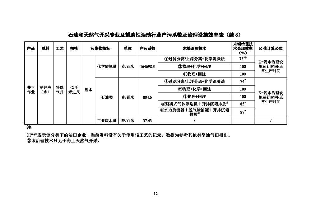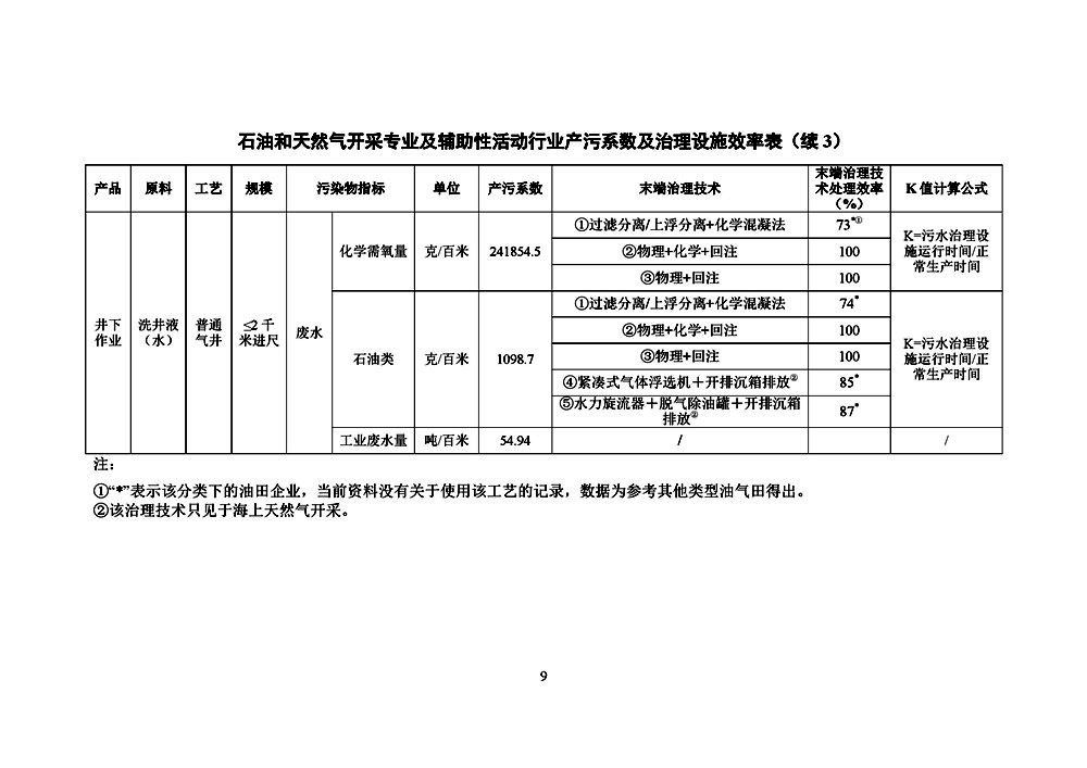 導(dǎo)讀:第二次全國(guó)污染源普查 石油和天然氣開(kāi)采專業(yè)及輔助性活動(dòng)行業(yè)系數(shù)手冊(cè)(初稿) 本手冊(cè)僅用于第二次全國(guó)污染源普查工業(yè)污染源普查范圍中,《國(guó)民經(jīng)濟(jì)行業(yè)分類》(GB/T 4754-2017)中1120石油和天然氣開(kāi)采專業(yè)及輔助性活動(dòng)使用產(chǎn)污系數(shù)法核算工業(yè)污染物產(chǎn)生量和排放量的普查對(duì)象。利用本手冊(cè)進(jìn)行產(chǎn)排污核算得出的污染物產(chǎn)生量與排放量?jī)H代表了特定行業(yè)、工藝、產(chǎn)品、原料在正常工況下污染物產(chǎn)生與排放量的一般規(guī)律。廢水指標(biāo)包括:工業(yè)廢水量、化學(xué)需氧量、石油類;固體廢物指標(biāo)包括:廢酸化液、廢壓裂液、廢洗井液、廢棄鉆井液、含油污泥。