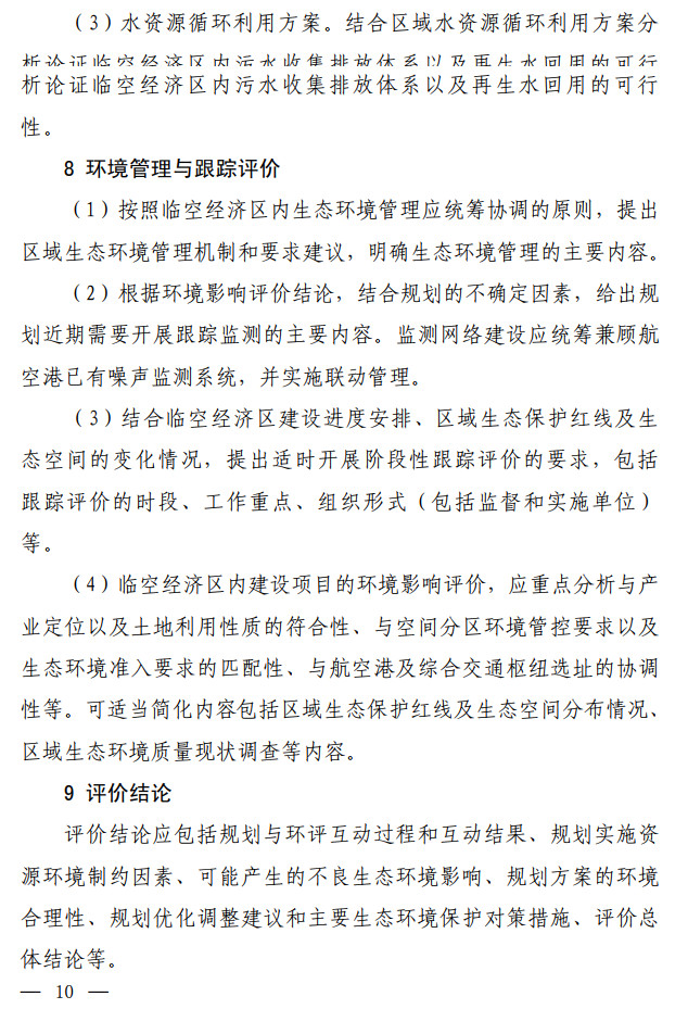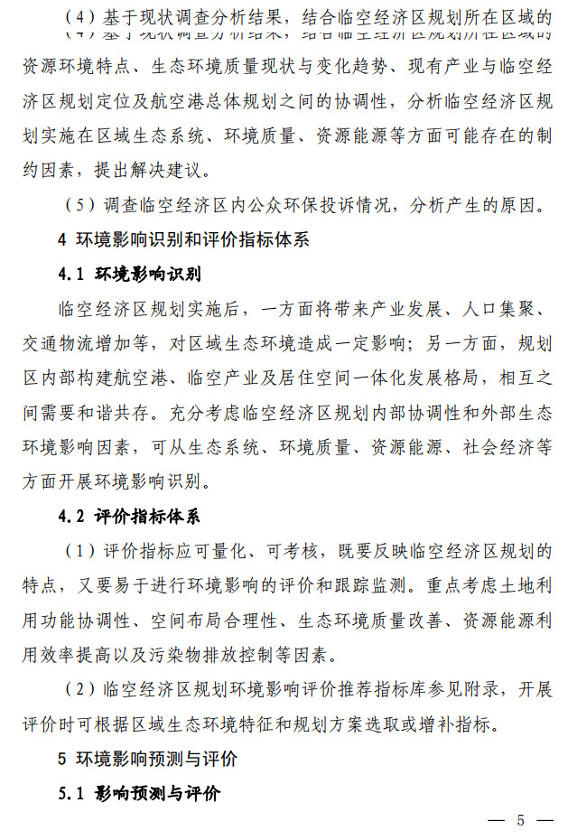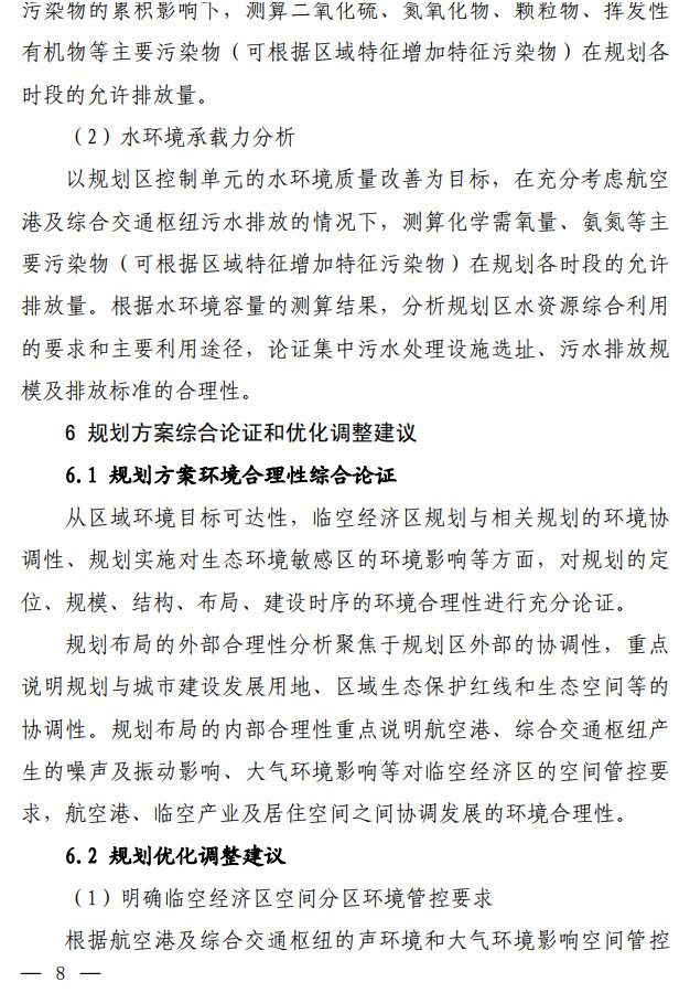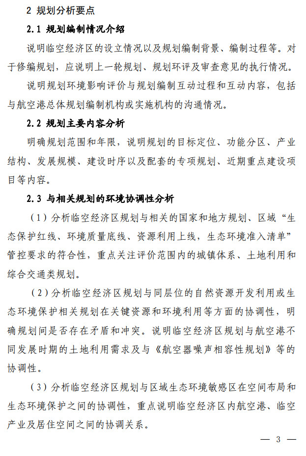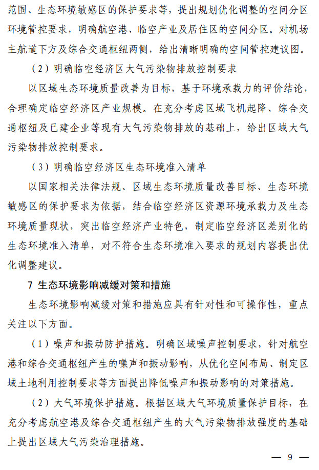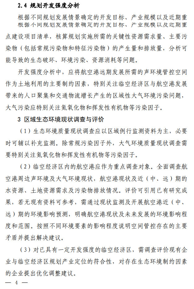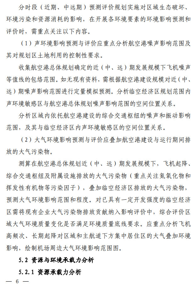 生態(tài)環(huán)境部發(fā)布了關(guān)于印發(fā)《臨空經(jīng)濟(jì)區(qū)規(guī)劃環(huán)境影響評(píng)價(jià)技術(shù)要點(diǎn)(試行)》的通知,該文件說(shuō)明了全面調(diào)查航空港周邊聲環(huán)境及大氣環(huán)境現(xiàn)狀,航空港現(xiàn)狀及近(中、遠(yuǎn))期的水資源、土地資源需求及污染物排放情況。評(píng)價(jià)可引用已有研究成 果,若無(wú)現(xiàn)有資料可參考,需通過(guò)現(xiàn)狀監(jiān)測(cè)及開展航空港近(中、 遠(yuǎn))期的環(huán)境影響預(yù)測(cè),明確航空港現(xiàn)狀及未來(lái)發(fā)展的環(huán)境影響程 度和范圍。按照不同環(huán)境要素的影響程度說(shuō)明空間管控存在的主要矛盾并提出解決建議。全文如下: