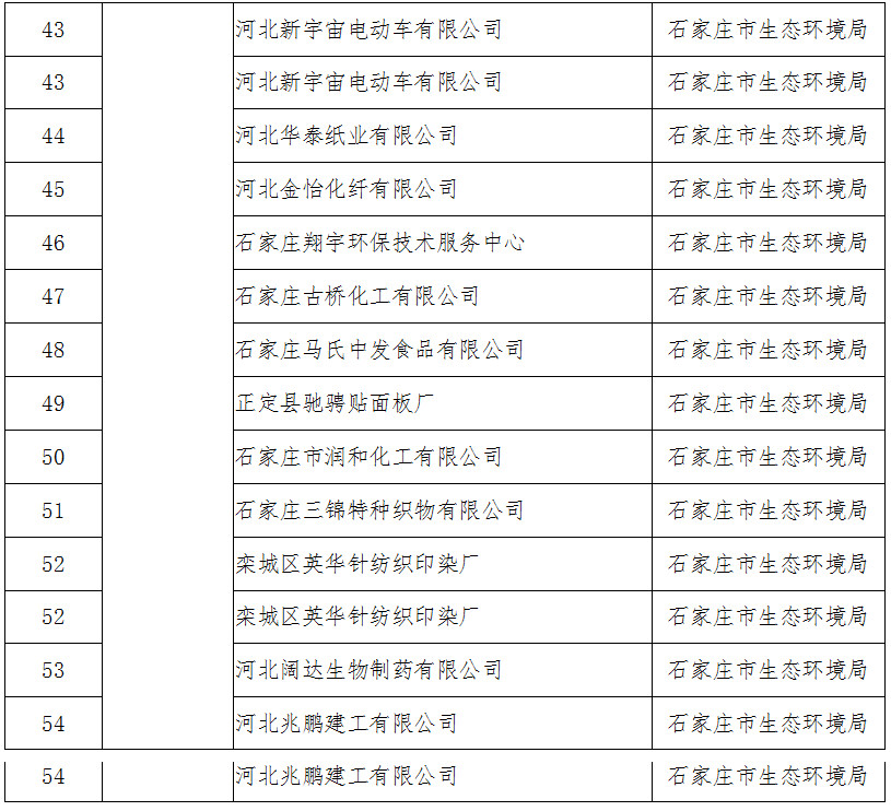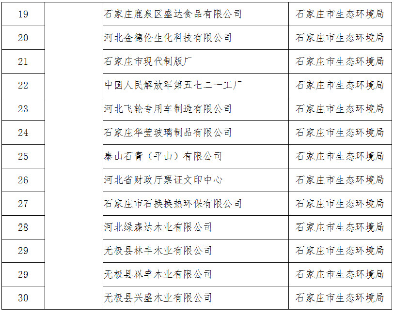 河北省2019年度開展強(qiáng)制性清潔生產(chǎn)審核企業(yè)名單