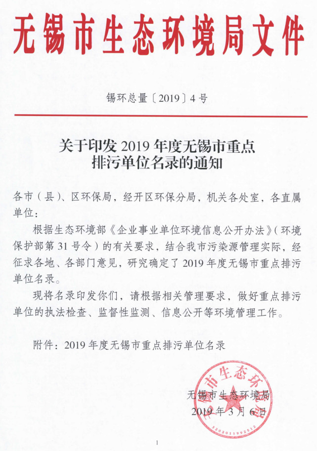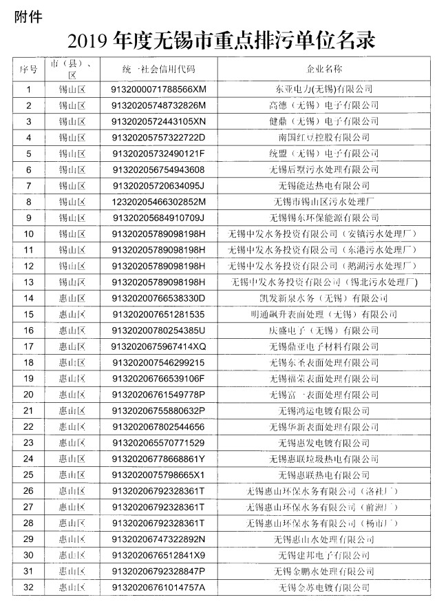 日前,無錫市發(fā)布2019年度無錫市重點(diǎn)排污單位名錄,包括眾多污水處理廠、鋼鐵企業(yè)、水泥企業(yè)、固體廢物處置企業(yè)等,全文如下:
