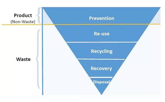 在固廢處理領(lǐng)域,最重要的法規(guī)是1975年頒布的廢棄物框架指令,該指令頒布以來,經(jīng)歷了1991年、2006年、2008年共3次修訂,明確了關(guān)于廢棄物處理的各種概念、定義,是歐盟在固廢處理領(lǐng)域最重要的法律之一。該指令提出了固廢處理金字塔(European Waste Hierarchy)的概念。固廢處理金字塔是歐盟提出的應(yīng)對廢棄物問題的處理原則,規(guī)定了各種方法的優(yōu)先級,體現(xiàn)了歐盟對于固廢處理的先進(jìn)理念,歐盟各國也基本是在遵循此原則開展廢棄物處理工作。具體如下圖所示: