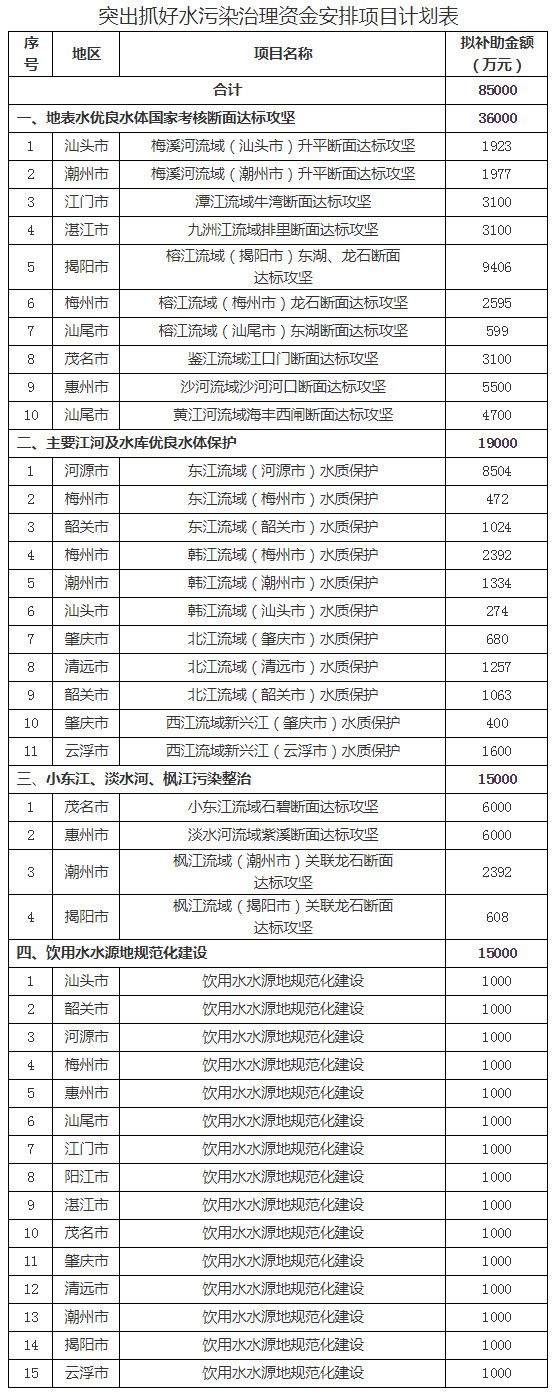 1.突出抓好水污染治理資金安排計劃表