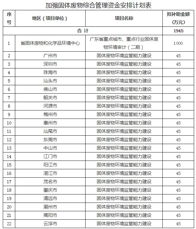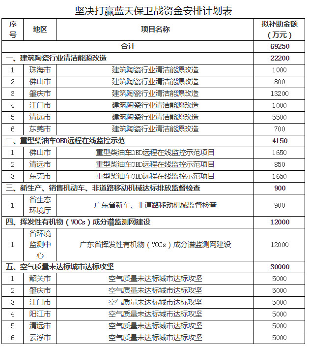 按照《廣東省省級財政專項資金管理辦法(試行)》(粵府〔2018〕120號)《關于深化省級預算編制執(zhí)行監(jiān)督管理改革的意見》(粵辦發(fā)〔2018〕17號)等要求,現(xiàn)將2019年打好污染防治攻堅戰(zhàn)專項資金安排計劃進行公示,詳見附件。