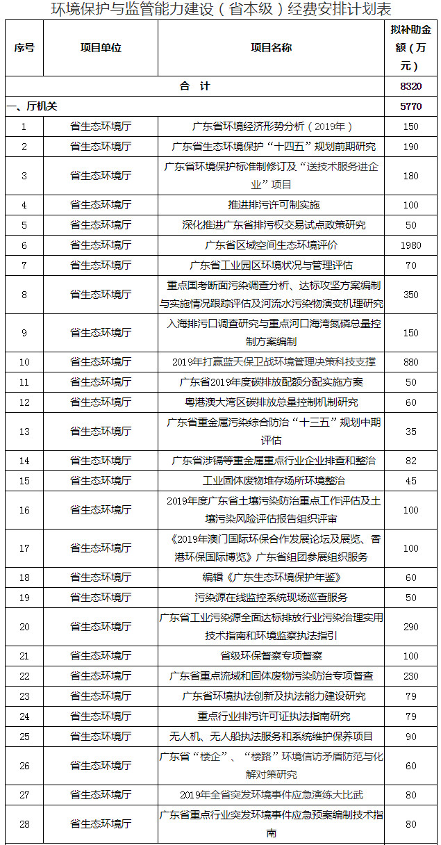 近日,廣東省生態(tài)環(huán)境廳發(fā)布了廣東省生態(tài)環(huán)境廳辦公室關于2019年打好污染防治攻堅戰(zhàn)專項資金安排計劃的公示,全文如下: