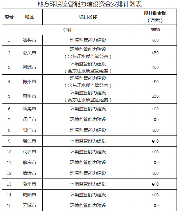 5.地方環(huán)境監(jiān)管能力建設資金安排計劃表