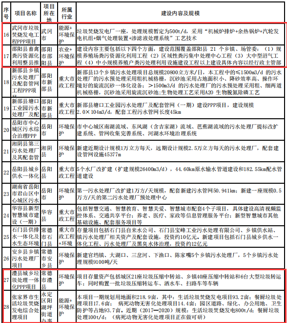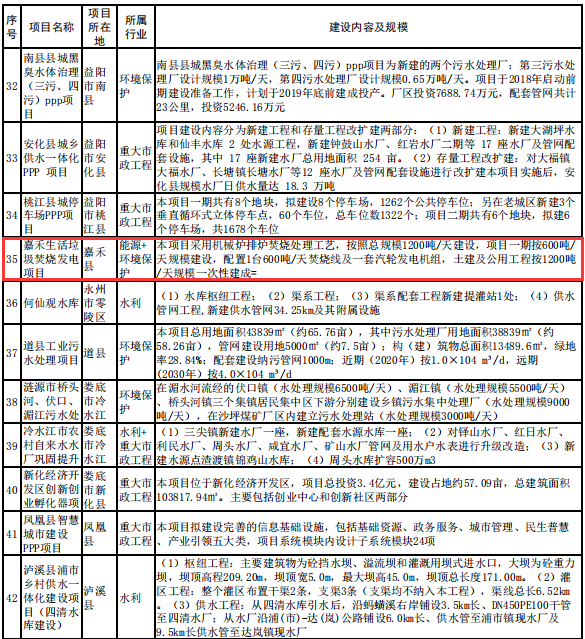導(dǎo)讀:近日,湖南省發(fā)布了關(guān)于分解下達湖南省2019年P(guān)PP項目前期工作中央預(yù)算內(nèi)投資計劃的公示,涉及多個環(huán)保項目,其中有5個垃圾焚燒發(fā)電項目等多個固廢項目,還涉多個污水處理廠項目,詳情如下: