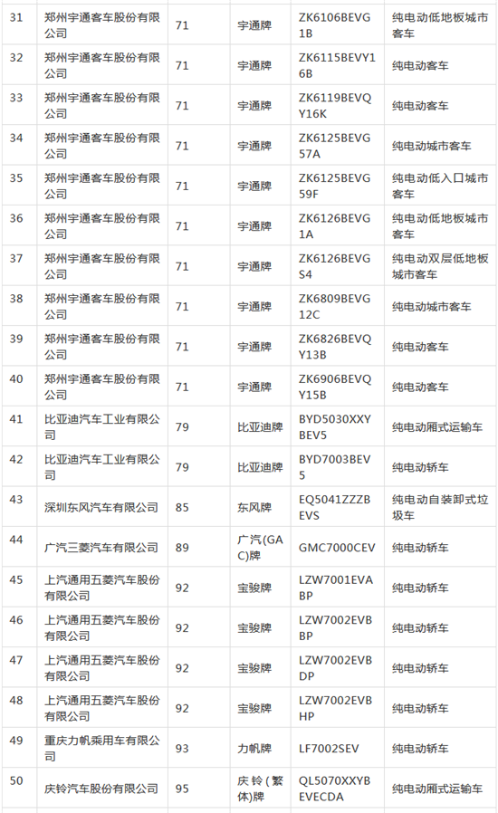 新能源汽車推廣應(yīng)用推薦車型目錄