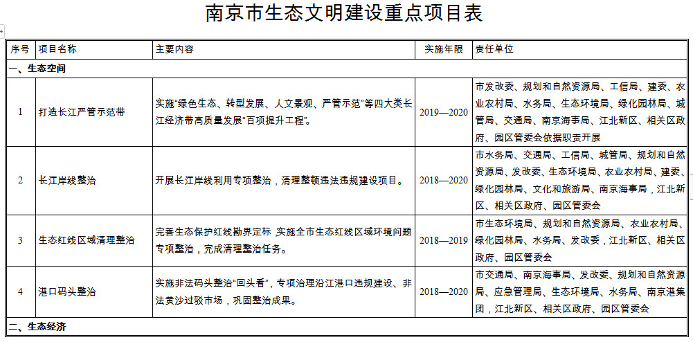 南京市生態(tài)文明建設重點項目表