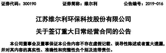 江蘇維爾利環(huán)??萍脊煞萦邢薰?以下簡稱“維爾利”或“公司”)發(fā)布公告稱,公司近日與西安市污水處理有限責(zé)任公司簽訂了《西安市生活垃圾末端處理系統(tǒng)1600m³/d滲濾液處理應(yīng)急工程運行服務(wù)項目合同》(以下簡稱“合同”)。