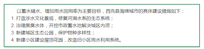 西充縣于今年2月出臺了《西充縣海綿城市建設(shè)計劃》及建設(shè)項目計劃,確定了到2020年達成目標:70%的年徑流總量控制率。