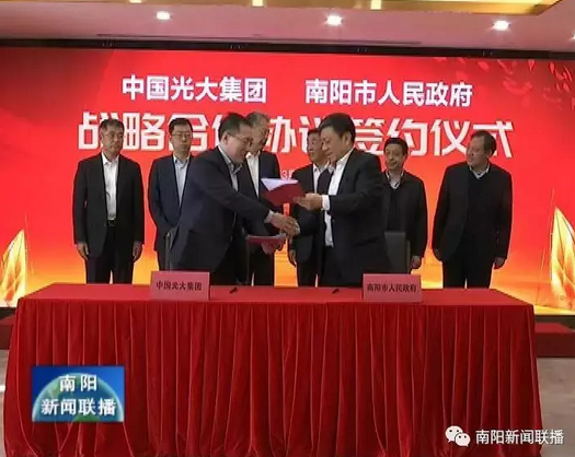 3月15號,南陽市人民政府與中國光大集團(tuán)股份公司在京簽署戰(zhàn)略合作框架協(xié)議。雙方約定,本著友好合作、互利共贏的原則,充分利用各自資源優(yōu)勢,傾力創(chuàng)造有利條件,持續(xù)鞏固擴(kuò)大環(huán)保、金融兩個(gè)重點(diǎn)領(lǐng)域,深入挖掘文旅、康養(yǎng)兩個(gè)重要潛力點(diǎn),積極探索農(nóng)村遠(yuǎn)程醫(yī)療、美麗鄉(xiāng)村建設(shè)兩個(gè)關(guān)鍵創(chuàng)新點(diǎn),不斷推進(jìn)全方位、多領(lǐng)域深層合作。