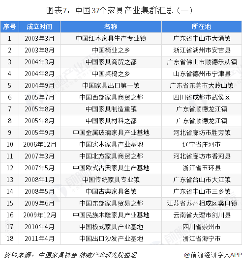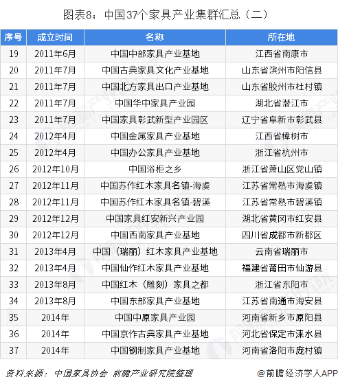 中國37個家具產(chǎn)業(yè)集群地區(qū)分布圖譜