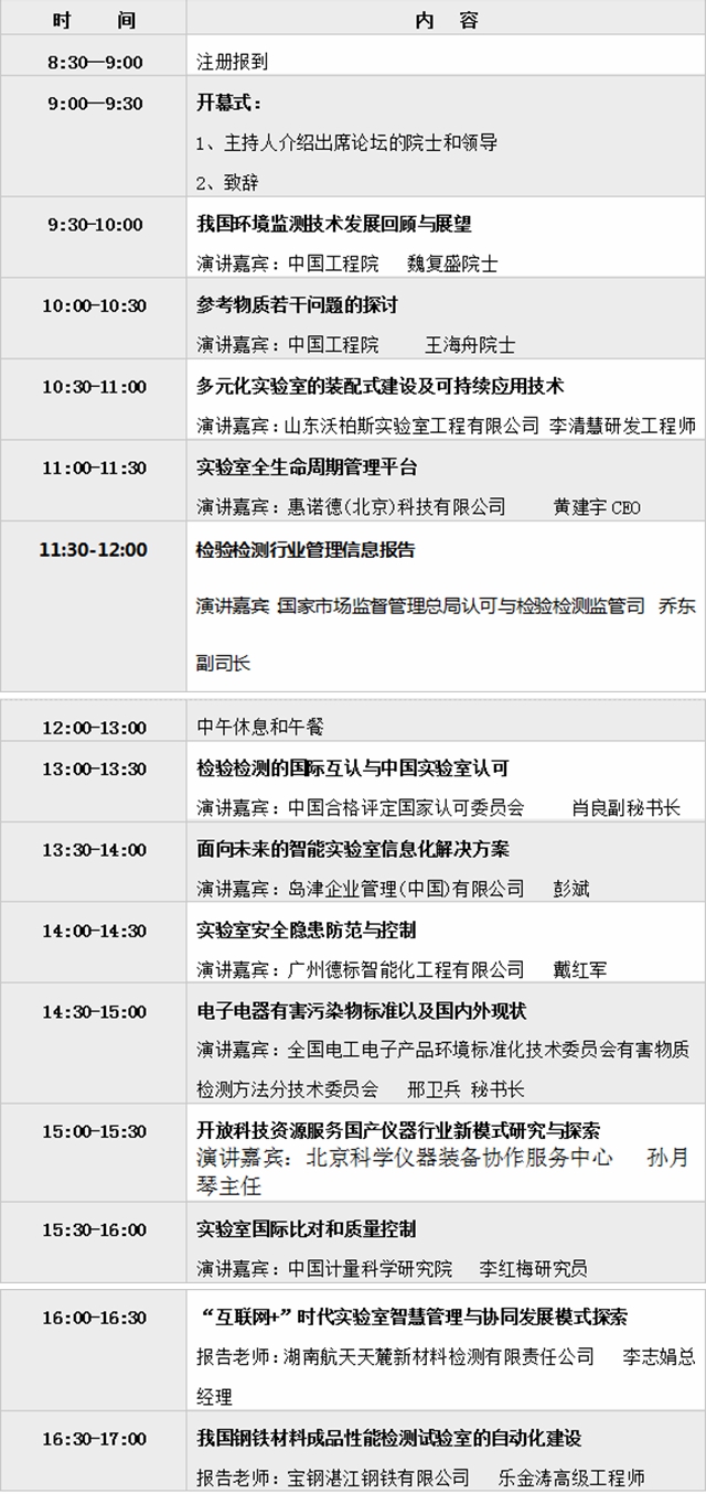 一、2019中國實驗室發(fā)展大會日程安排(包括大會開幕式及大會報告和8個專題論壇)