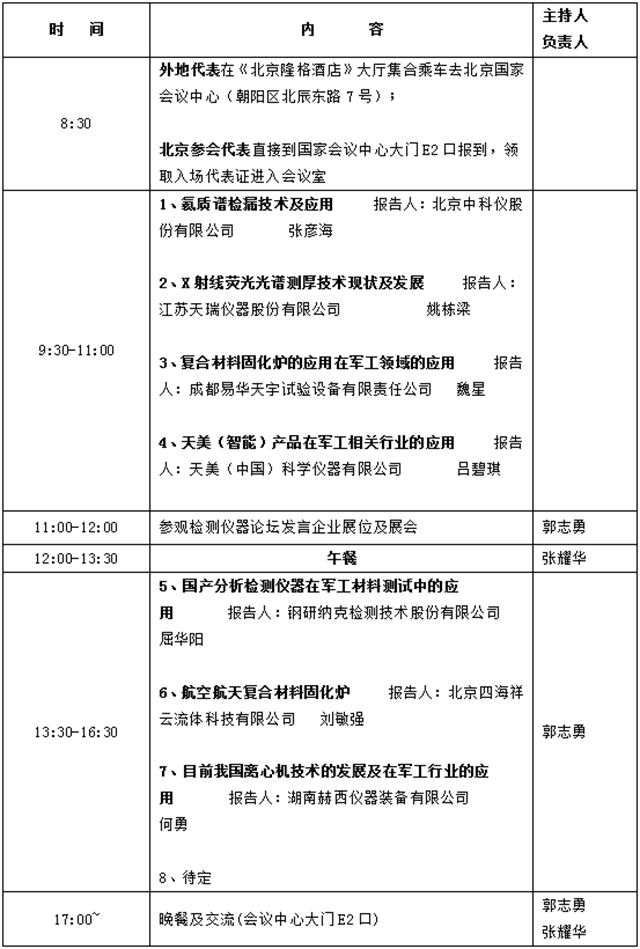 (參加人員:軍工企業(yè)代表、試驗與檢測儀器論壇發(fā)言企業(yè)代表)