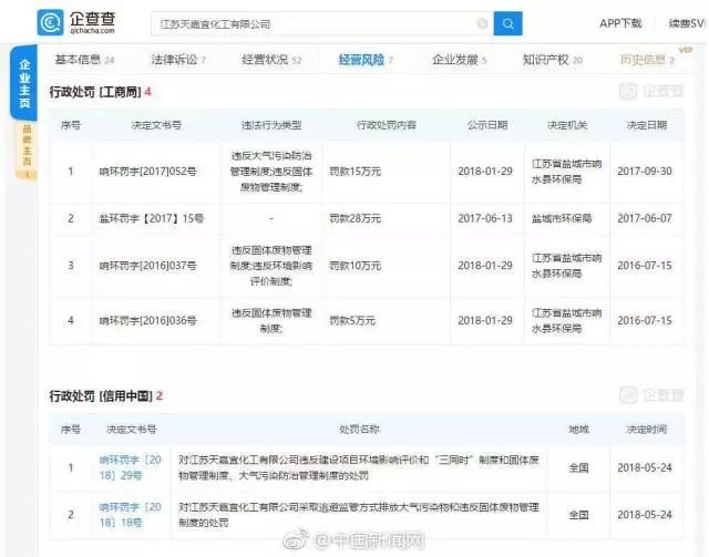 該公司共有6條行政處罰信息,處罰原因為違反固體廢物管理制度、違反環(huán)境影響評價制度、違反大氣污染防治管理制度等。2018年曾因涉及13項安全隱患,被國家安全監(jiān)管總局辦公廳發(fā)函督促整改。