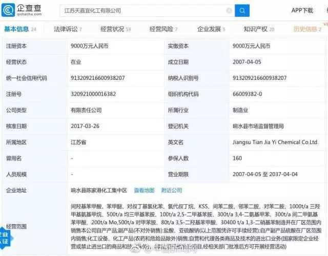 3月21日下午14點(diǎn)50分左右,位于江蘇鹽城市陳家港化工園區(qū)的江蘇天嘉宜化工有限公司,發(fā)生爆炸事故。截至18點(diǎn)30分,現(xiàn)場仍有明火在燃燒。