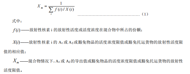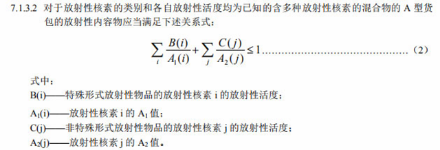(5.2.3)對(duì)于含有多種放射性核素的混合物,可按下式確定放射性核素的基本值: