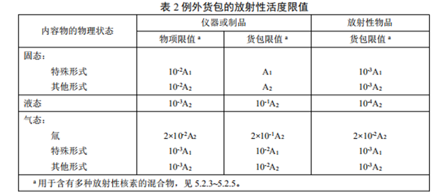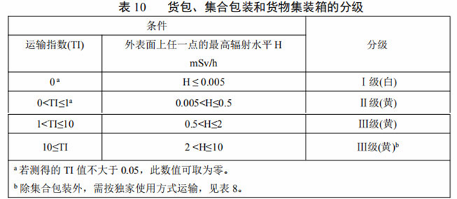 貨包或集合包裝的外表面上任一點(diǎn)的最高輻射水平應(yīng)不超過(guò)2mSv/h,滿足下列任何一項(xiàng)情況除外(詳見(jiàn)附件5.3.1)。