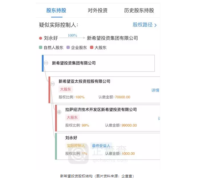 據(jù)悉,新希望投資是新希望集團旗下的投資平臺,由新希望亞太投資控股有限公司控股,注冊地址位于拉薩經(jīng)濟開發(fā)區(qū)。經(jīng)營范圍包括:創(chuàng)業(yè)投資(不得從事?lián):头康禺a(chǎn)業(yè)務(wù);不得參與發(fā)起或管理公募或私募證券投資基金、投資金融衍生品);股權(quán)投資(不含公募基金。不得從事證券、期貨類投資;不得參與發(fā)起或管理公募或私募證券投資基金、投資金融衍生品;不得從事房地產(chǎn)和擔(dān)保業(yè)務(wù));投資管理(不含金融和經(jīng)紀業(yè)務(wù)。不得從事證券、期貨類投資;不得向非合格投資者募集、銷售、轉(zhuǎn)讓私募產(chǎn)品或者私募產(chǎn)品收益權(quán));資產(chǎn)管理(不含金融資產(chǎn)管理和保險資產(chǎn)管理)等。
