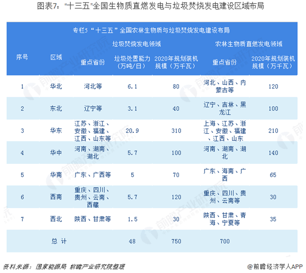 華東地區(qū)依然是垃圾焚燒建設(shè)和農(nóng)林生物質(zhì)直燃發(fā)電的重點區(qū)域,2020年規(guī)劃的垃圾焚燒發(fā)電裝機規(guī)模達(dá)到310萬千瓦,農(nóng)林生物質(zhì)直燃發(fā)電的規(guī)劃裝機規(guī)模達(dá)到210萬千瓦;2020年西南和華中地區(qū)規(guī)劃的垃圾焚燒發(fā)電裝機規(guī)模也將分別達(dá)到120萬千和100萬千瓦;華中、華北和東北地區(qū)的農(nóng)林生物質(zhì)直燃發(fā)電的規(guī)劃裝機規(guī)模分貝為140萬千瓦、120萬千瓦和100萬千瓦。